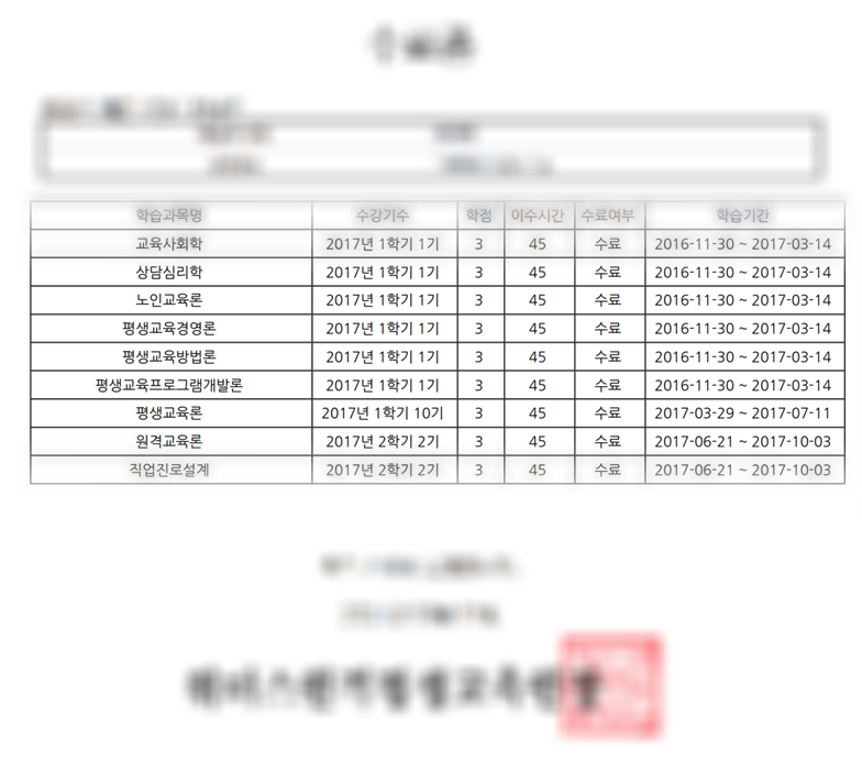 저는 평생교육사 자격증 취득을 위해 학점은행제로 필요학점 수강과 현장실습 후 일지 제출까지 완료하였습니다. 실습과목이 문제없이 완료된다면 2022년 1월에는 평생교육사 자격증을 신청할 수 있는 상태이죠. 저는 혼자 평생교육사를 준비하다보니 물어보고 알아볼 곳은 인터넷 밖에 없었습니다. 헌데 검색을 하면 죄다 광고스러운(?) 글들만 잔뜩 있더라구요. 명확한 결론은 없이 상담을 위한 카톡아이디와 연락처만 있는 글들.. 그런 상담시 호구처럼 끌려가는 경향이 있어서 최대한 상담을 피하는 방향을 찾아, 여차저차 집요하게 검색하고 진행했습니다. 그렇게 평생교육사 자격증 취득을 목전에 둔 지금! 저처럼 아무런 사전정보 없이 평생교육사 자격증을 알게 되고 준비할까 고민하시는 분들을 위해 경험에 기반한 자격증 준비이유부..